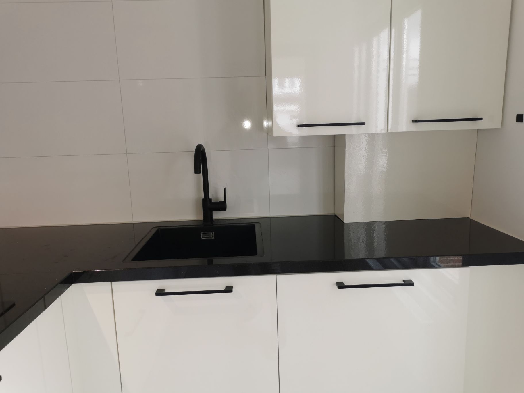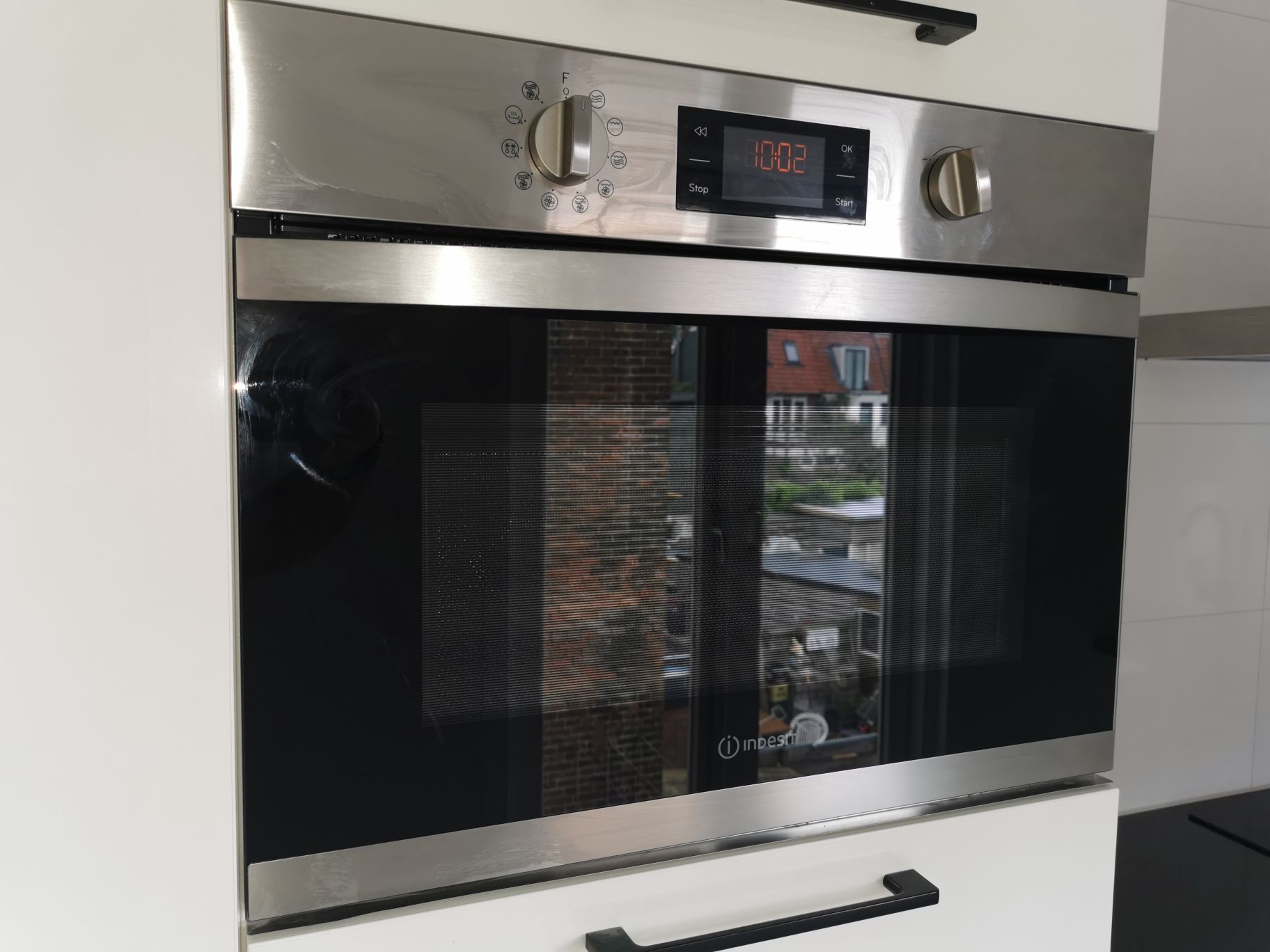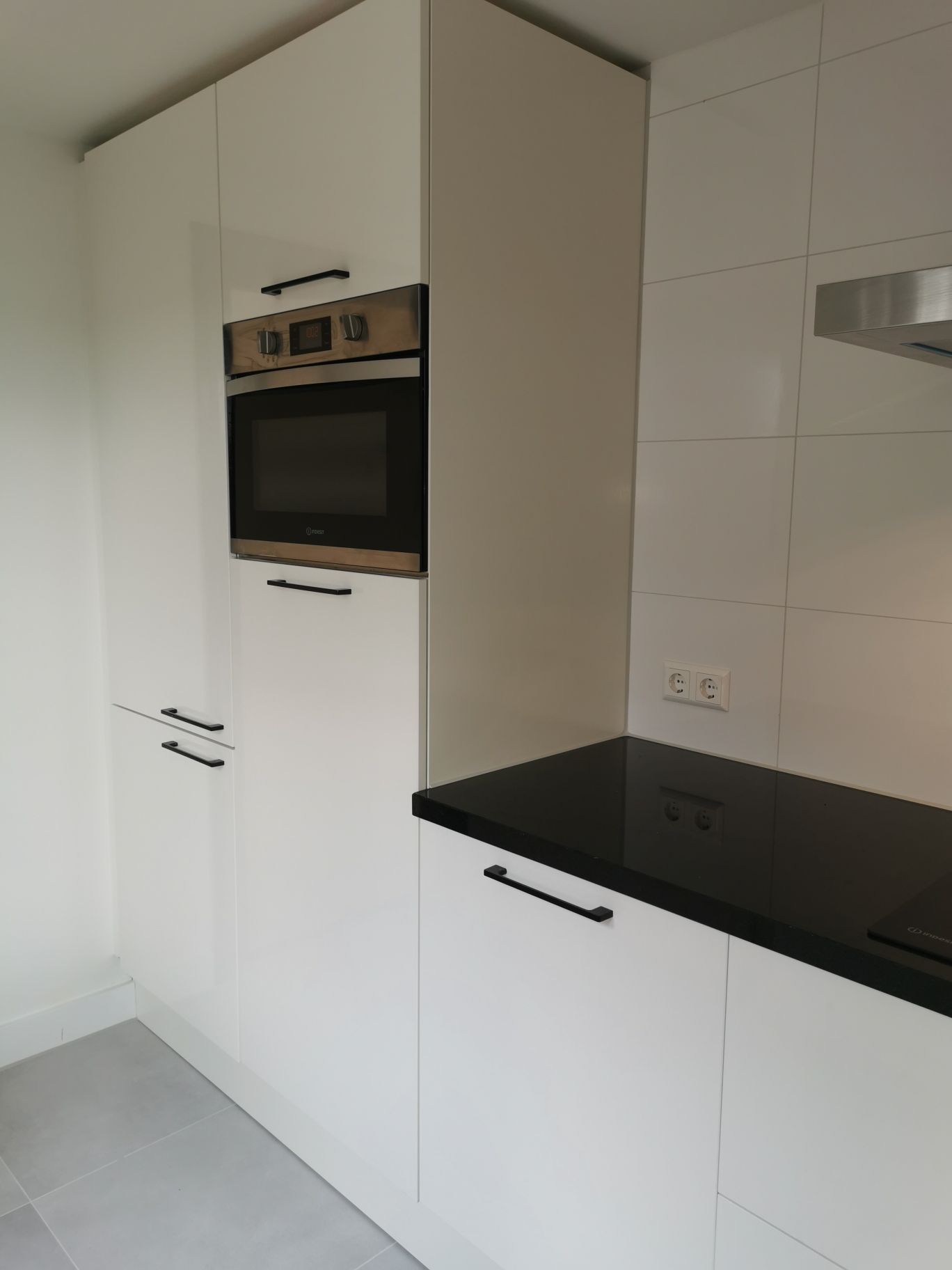 The entrance opens into the hallway, where you will find the first toilet and the door to the spacious and bright living room. The living area offers high ceilings and a contemporary look and feel. At the rear is the modern kitchen, fully equipped with a large fridge/freezer, dishwasher, combi oven and induction hob.